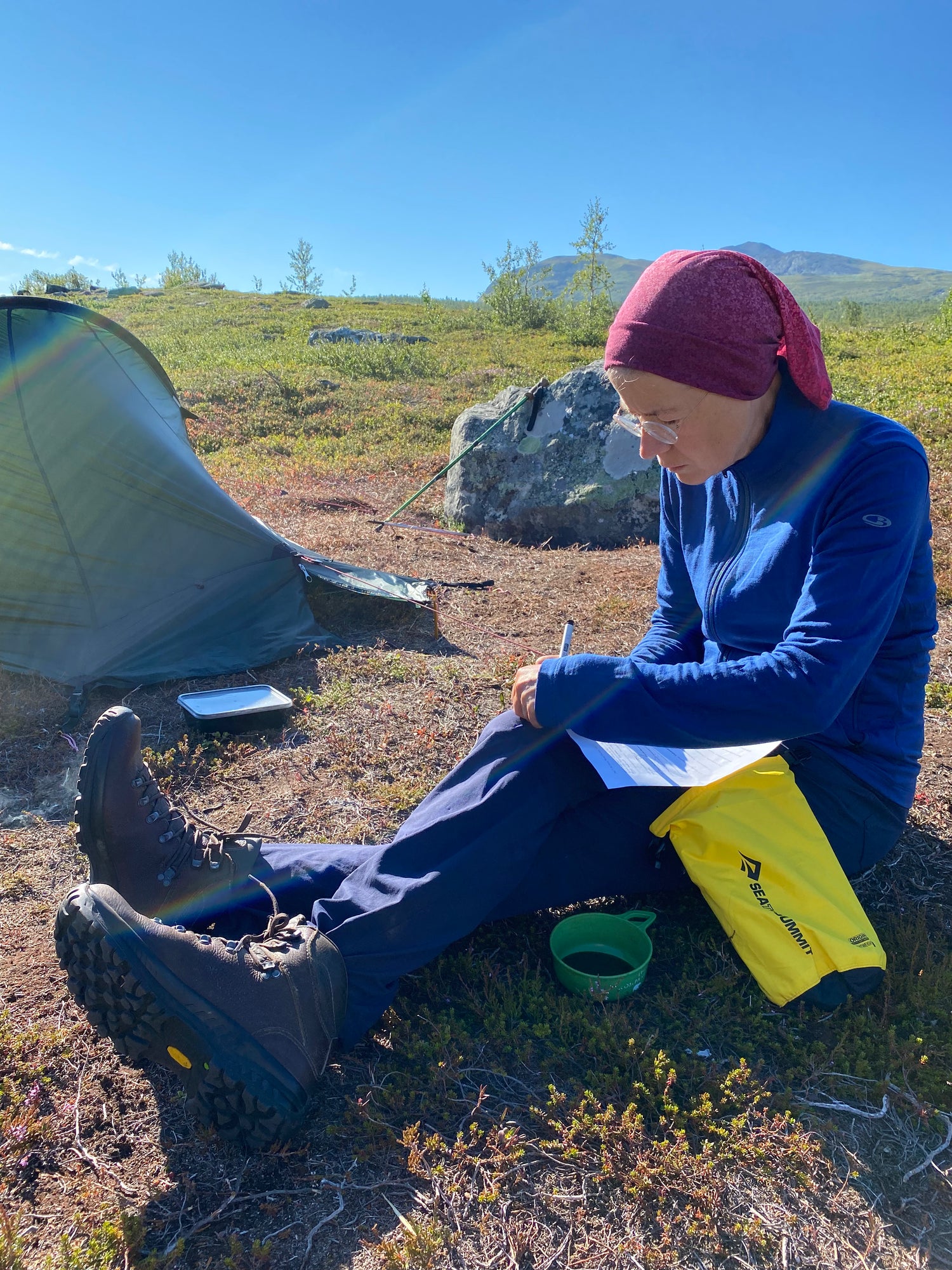 Coffee break and sketching during a hike in Badjelánnda/Padejlanta National Park, in northern Sweden. The area is known for its unique flora.